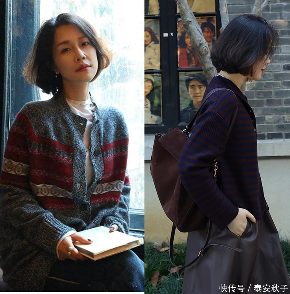 等春日出门的时候,为了应对忽冷忽热的多变天气,可以在羊毛衫的外面,叠穿一件复古开衫。